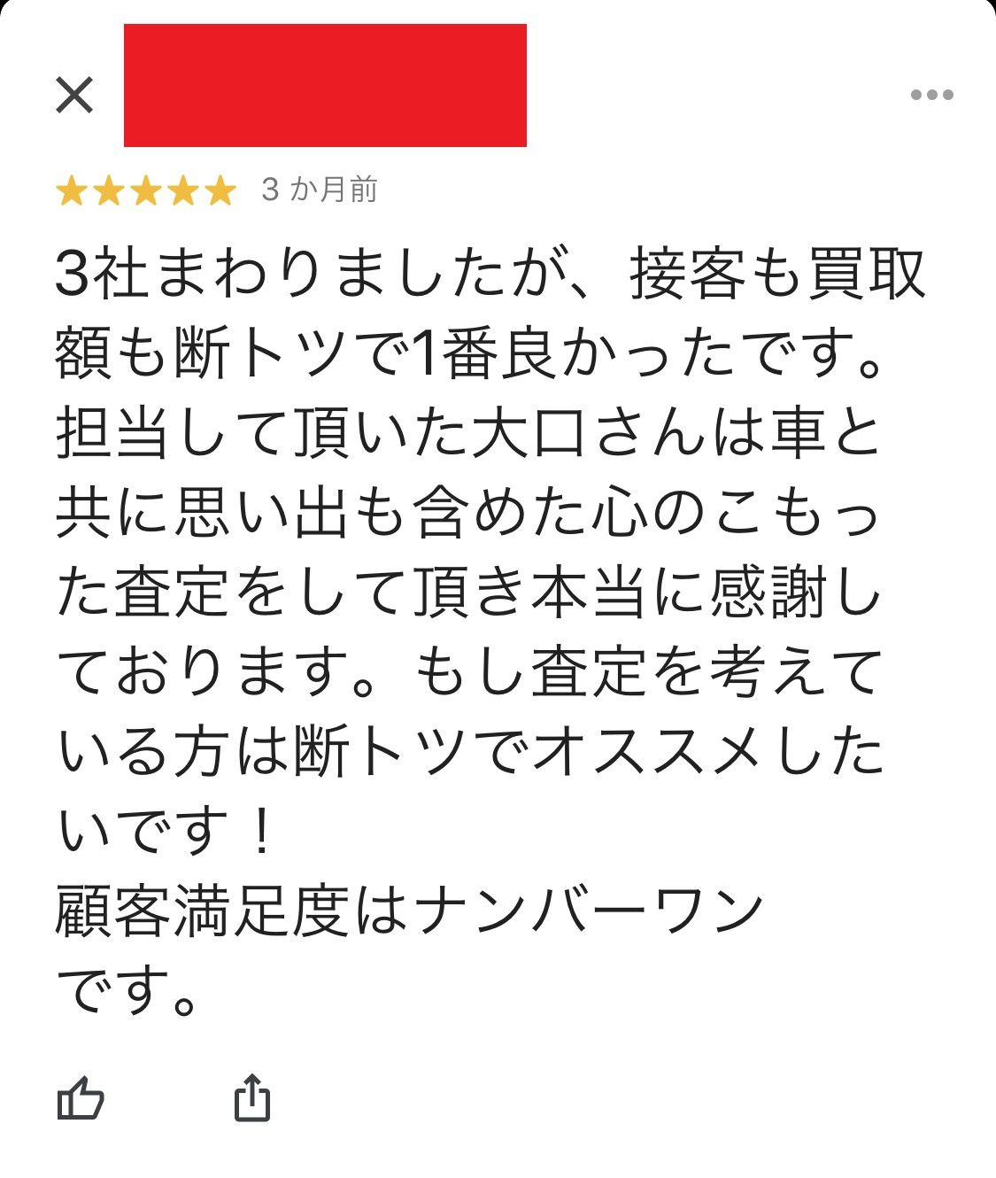 3社回りましたが接客も買取額もダントツで1番良かったです。