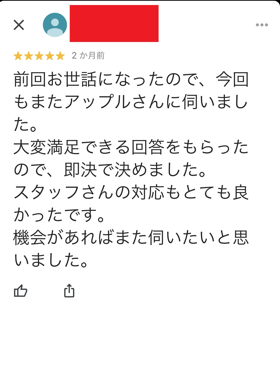 前回お世話になったので、今回もまたアップルさんに伺いました。