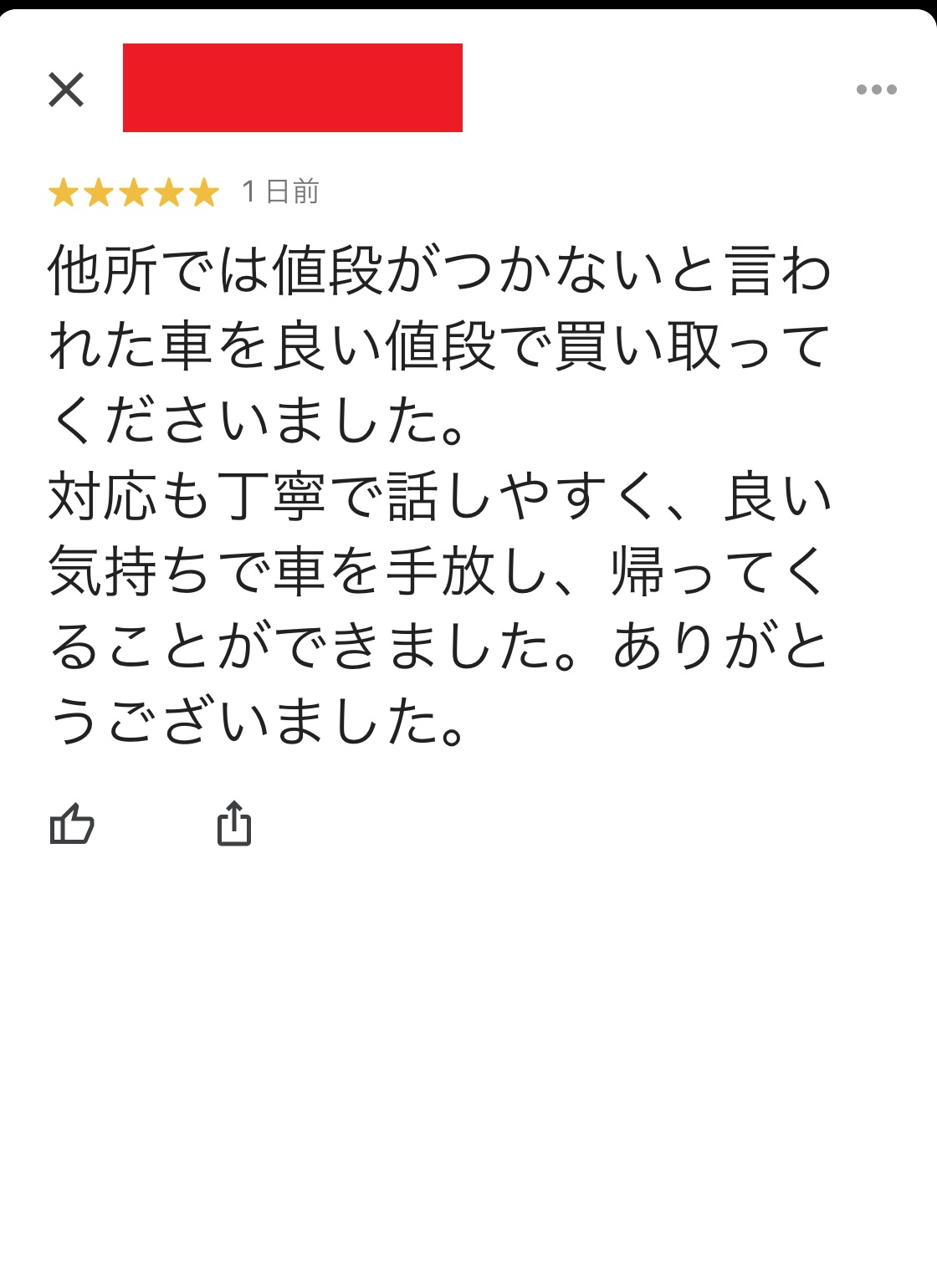 対応も丁寧で話しやすく、いい気持ちで車を手放し、帰ってくることができました。ありがとうございました。