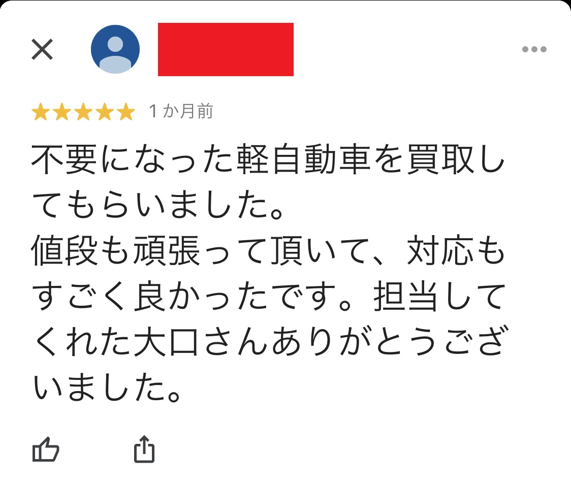 お車のご相談・ 査定だけでもOK! カンタン 入力 30秒 アップルがブランド買取始めました! お電話でも受付中! 受付時間AM10:00~PM7:00(毎週水曜日店休) 052-304-0136 お車のご相談・ 査定だけでもOK! カンタン 入力 30秒 アップルがブランド買取始めました! お電話でも受付中! 受付時間AM10:00~PM7:00(毎週水曜日店休) 052-304-0136 アップルがブランド買取始めました! お電話でも受付中! 受付時間AM10:00~PM7:00(毎週水曜日店休) 052-304-0136 店舗情報 在庫車 スタッフ紹介 ブログ お客様の声 キャンペーン 無料査定 click お客様の声 ご記入日: 2020/01/19 匿名希望ミライース様 車名:ダイハツ ミライース 不要になった軽自動車を買取してもらいました。値段も頑張って頂いて、対応もすごく良かったです。担当してくれた大口さんありがとうございました。 前へ 次へ お客様の声一覧を見る