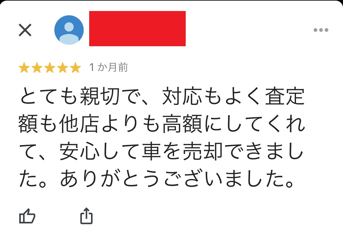 お車のご相談・ 査定だけでもOK! カンタン 入力 30秒 アップルがブランド買取始めました! お電話でも受付中! 受付時間AM10:00~PM7:00(毎週水曜日店休) 052-304-0136 お車のご相談・ 査定だけでもOK! カンタン 入力 30秒 アップルがブランド買取始めました! お電話でも受付中! 受付時間AM10:00~PM7:00(毎週水曜日店休) 052-304-0136 アップルがブランド買取始めました! お電話でも受付中! 受付時間AM10:00~PM7:00(毎週水曜日店休) 052-304-0136 店舗情報 在庫車 スタッフ紹介 ブログ お客様の声 キャンペーン 無料査定 click お客様の声 ご記入日: 2019/12/19 匿名希望プラド様 車名:トヨタ ランドクルーザープラド とても親切で、対応も良く査定額も他店より高額にしてくれて、安心して車を売却出来ました。ありがとうございました。 前へ 次へ お客様の声一覧を見る