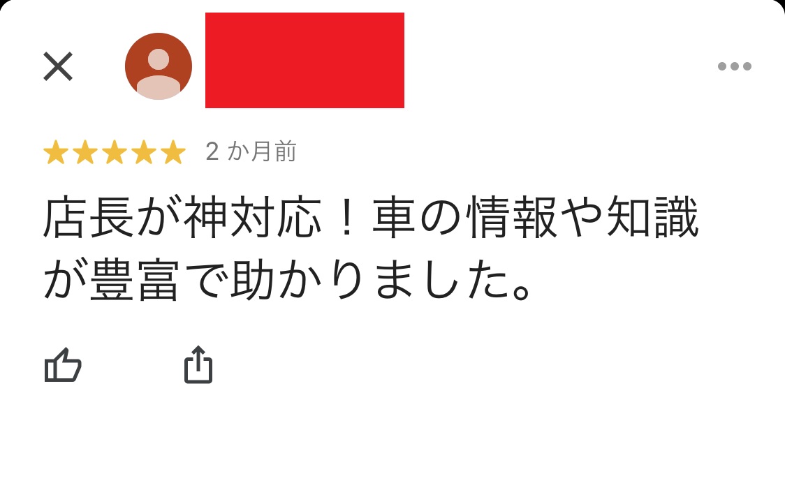 お車のご相談・ 査定だけでもOK! カンタン 入力 30秒 アップルがブランド買取始めました! お電話でも受付中! 受付時間AM10:00~PM7:00(毎週水曜日店休) 052-304-0136 お車のご相談・ 査定だけでもOK! カンタン 入力 30秒 アップルがブランド買取始めました! お電話でも受付中! 受付時間AM10:00~PM7:00(毎週水曜日店休) 052-304-0136 アップルがブランド買取始めました! お電話でも受付中! 受付時間AM10:00~PM7:00(毎週水曜日店休) 052-304-0136 店舗情報 在庫車 スタッフ紹介 ブログ お客様の声 キャンペーン 無料査定 click お客様の声 ご記入日: 2020/03/22 匿名希望RX様 車名:レクサス RX (国内仕様 右H(H27年10月~HYBRID含) 店長が紙対応!車の情報や知識が豊富で助かりました。 前へ 次へ お客様の声一覧を見る