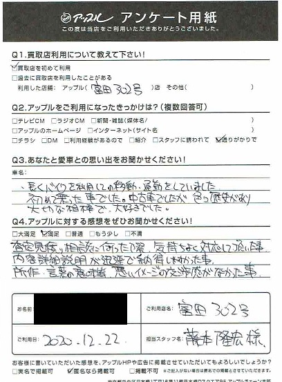 査定見積もり相談に伺った際、気持ちよく対応して頂いた事。
