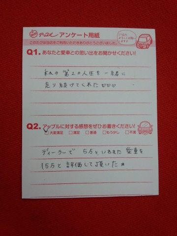 お車のご相談・ 査定だけでもOK! カンタン 入力 30秒 アップルがブランド買取始めました! お電話でも受付中! 受付時間10:00 ~ 19:00 0532-64-5911 お車のご相談・ 査定だけでもOK! カンタン 入力 30秒 アップルがブランド買取始めました! お電話でも受付中! 受付時間10:00 ~ 19:00 0532-64-5911 アップルがブランド買取始めました! お電話でも受付中! 受付時間10:00 ~ 19:00 0532-64-5911 店舗情報 在庫車 スタッフ紹介 ブログ お客様の声 キャンペーン 無料査定 click お客様の声 ご記入日: 2014/04/01 匿名様 ディーラーで5万円と言われた愛車を15万円と評価して頂いた★ 前へ 次へ お客様の声一覧を見る