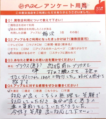 気分が良く息子の車の買取をしていただきました。