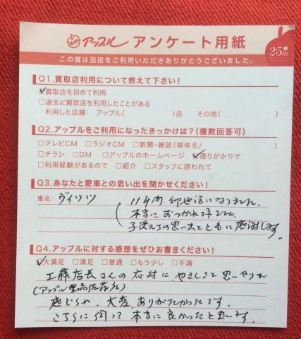 お車のご相談・ 査定だけでもOK! カンタン 入力 30秒 アップルがブランド買取始めました! お電話でも受付中! 受付時間10:00 ~ 19:00 0532-64-5911 お車のご相談・ 査定だけでもOK! カンタン 入力 30秒 アップルがブランド買取始めました! お電話でも受付中! 受付時間10:00 ~ 19:00 0532-64-5911 アップルがブランド買取始めました! お電話でも受付中! 受付時間10:00 ~ 19:00 0532-64-5911 店舗情報 在庫車 スタッフ紹介 ブログ お客様の声 キャンペーン 無料査定 click お客様の声 ご記入日: 2014/08/21 匿名様 工藤店長さんの対応に、やさしさと思いやりが感じられ、大変ありがたかったです。こちらに伺って本当に良かったと思います。 前へ 次へ お客様の声一覧を見る