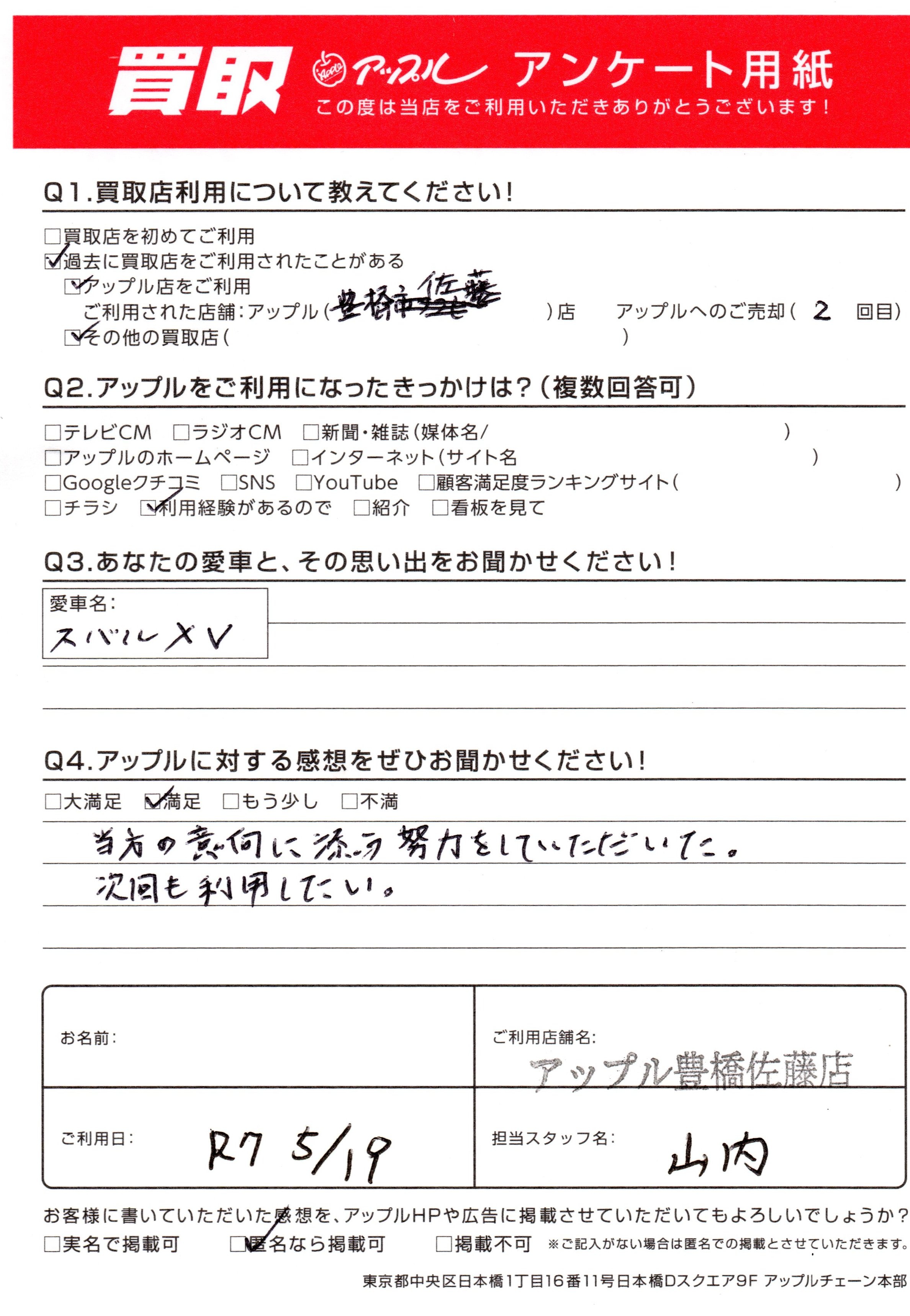 お車のご相談・ 査定だけでもOK! カンタン 入力 30秒 アップルがブランド買取始めました! お電話でも受付中! 受付時間10:00 ~ 19:00 0532-64-5911 お車のご相談・ 査定だけでもOK! カンタン 入力 30秒 アップルがブランド買取始めました! お電話でも受付中! 受付時間10:00 ~ 19:00 0532-64-5911 アップルがブランド買取始めました! お電話でも受付中! 受付時間10:00 ~ 19:00 0532-64-5911 店舗情報 在庫車 スタッフ紹介 ブログ お客様の声 キャンペーン 無料査定 click お客様の声 ご記入日: 2025/05/19 S様 車名:スバル XV (2017年5月~) 当方の以降に添う努力をしていただいた。次回も利用したい。 前へ 次へ お客様の声一覧を見る