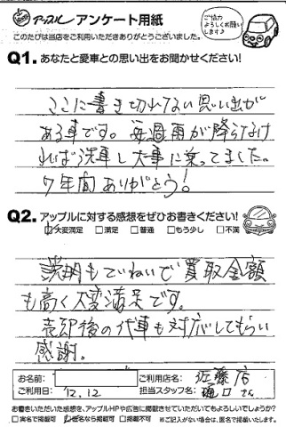売却後の代車も対応してもらい感謝。