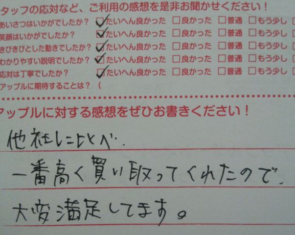 お車のご相談・ 査定だけでもOK! カンタン 入力 30秒 アップルがブランド買取始めました! お電話でも受付中! 受付時間10:00 ~ 19:00 0532-64-5911 お車のご相談・ 査定だけでもOK! カンタン 入力 30秒 アップルがブランド買取始めました! お電話でも受付中! 受付時間10:00 ~ 19:00 0532-64-5911 アップルがブランド買取始めました! お電話でも受付中! 受付時間10:00 ~ 19:00 0532-64-5911 店舗情報 在庫車 スタッフ紹介 ブログ お客様の声 キャンペーン 無料査定 click お客様の声 ご記入日: 2012/09/29 AN様 私たちアップルは他社さんに価格・サービスで負けないよう、常に勉強をしております。AN様が3年後や5年後に当店をご利用いただいても、それが変わらないように努めます。 前へ 次へ お客様の声一覧を見る