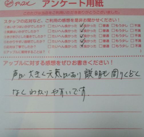 お車のご相談・ 査定だけでもOK! カンタン 入力 30秒 アップルがブランド買取始めました! お電話でも受付中! 受付時間10:00 ~ 19:00 0532-64-5911 お車のご相談・ 査定だけでもOK! カンタン 入力 30秒 アップルがブランド買取始めました! お電話でも受付中! 受付時間10:00 ~ 19:00 0532-64-5911 アップルがブランド買取始めました! お電話でも受付中! 受付時間10:00 ~ 19:00 0532-64-5911 店舗情報 在庫車 スタッフ紹介 ブログ お客様の声 キャンペーン 無料査定 click お客様の声 ご記入日: 2013/01/31 M・H様 アンケートのご協力誠にありがとうございました。当店は、ハッキリわかりやすくお値段のお話をします。担当:工藤 前へ 次へ お客様の声一覧を見る