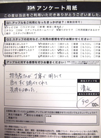 お車のご相談・ 査定だけでもOK! カンタン 入力 30秒 アップルがブランド買取始めました! お電話でも受付中! 受付時間10:00 ~ 19:00 0564-25-8118 お車のご相談・ 査定だけでもOK! カンタン 入力 30秒 アップルがブランド買取始めました! お電話でも受付中! 受付時間10:00 ~ 19:00 0564-25-8118 アップルがブランド買取始めました! お電話でも受付中! 受付時間10:00 ~ 19:00 0564-25-8118 店舗情報 在庫車 スタッフ紹介 ブログ お客様の声 キャンペーン お得 無料査定 click お客様の声 ご記入日: 2012/06/14 無記名様 担当者さんが丁寧で明るくて色々すぐ調べてくれて気持ちよかった。 前へ 次へ お客様の声一覧を見る