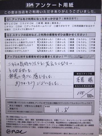 お車のご相談・ 査定だけでもOK! カンタン 入力 30秒 アップルがブランド買取始めました! お電話でも受付中! 受付時間10:00 ~ 19:00 0564-25-8118 お車のご相談・ 査定だけでもOK! カンタン 入力 30秒 アップルがブランド買取始めました! お電話でも受付中! 受付時間10:00 ~ 19:00 0564-25-8118 アップルがブランド買取始めました! お電話でも受付中! 受付時間10:00 ~ 19:00 0564-25-8118 店舗情報 在庫車 スタッフ紹介 ブログ お客様の声 キャンペーン お得 無料査定 click お客様の声 ご記入日: 2012/01/31 H.S様 こちらの気持ち以上に考えてくださりとてもよかった。熱意をすごく感じました。ありがとうございました。 前へ 次へ お客様の声一覧を見る