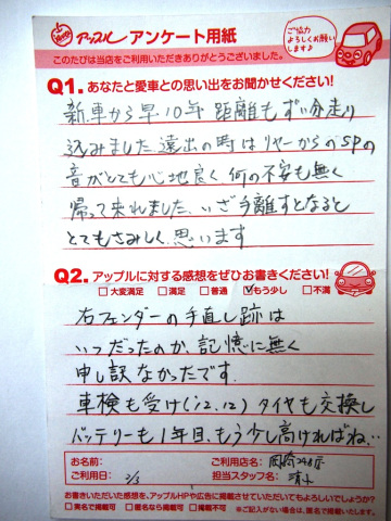 【アップルをご利用頂いた感想】