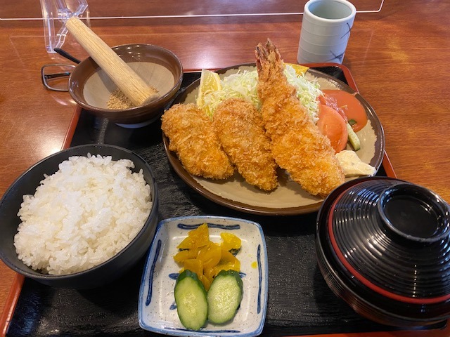 今回はエビフライとヒレカツが同時に楽しめる盛り合わせ定食にしました。