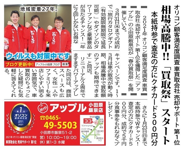 アップル小田原飯泉店のブログをご覧頂きありがとうございます。