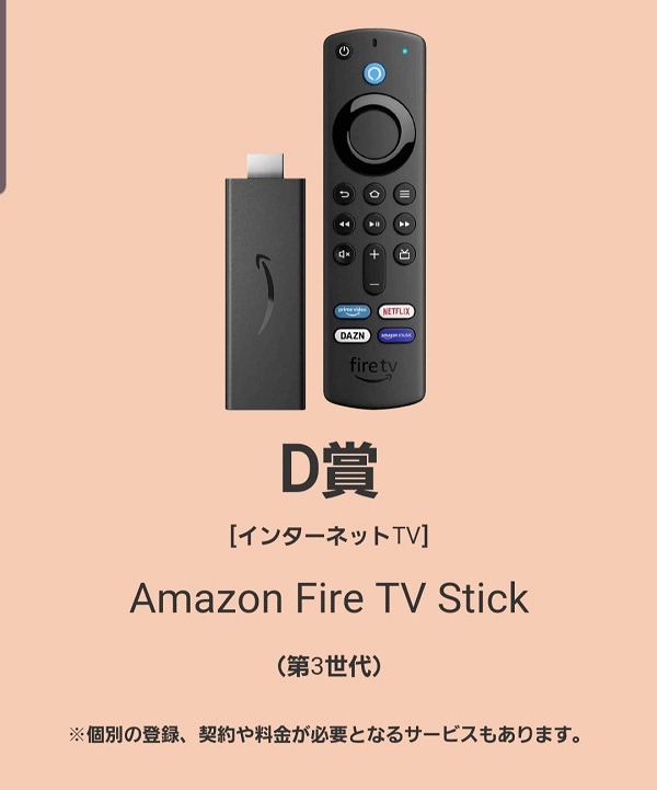 ★D賞 【インターネットTV】Amazon Fire TV Stick(第3世代)40名様