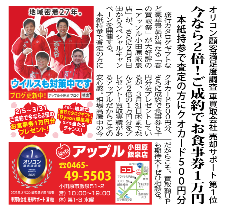 アップル小田原飯泉店のブログをご覧頂きありがとうございます!