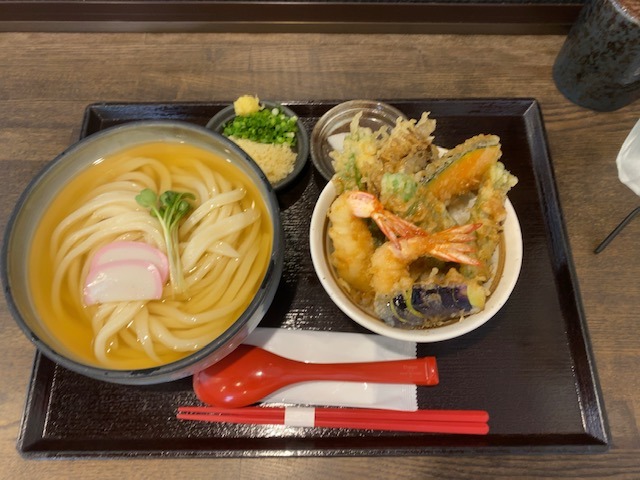平日限定の野菜の丼とセットのものにしました♪冷たいおうどんです。