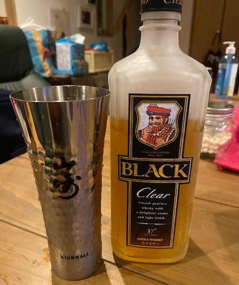 開けてみると山崎のタンブラーでした~!早速冷凍庫に入れられたキンキンのブラックニッカと一緒に記念写真!