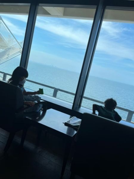 海を見ながら昼食をとりましたが子供達は興奮気味で