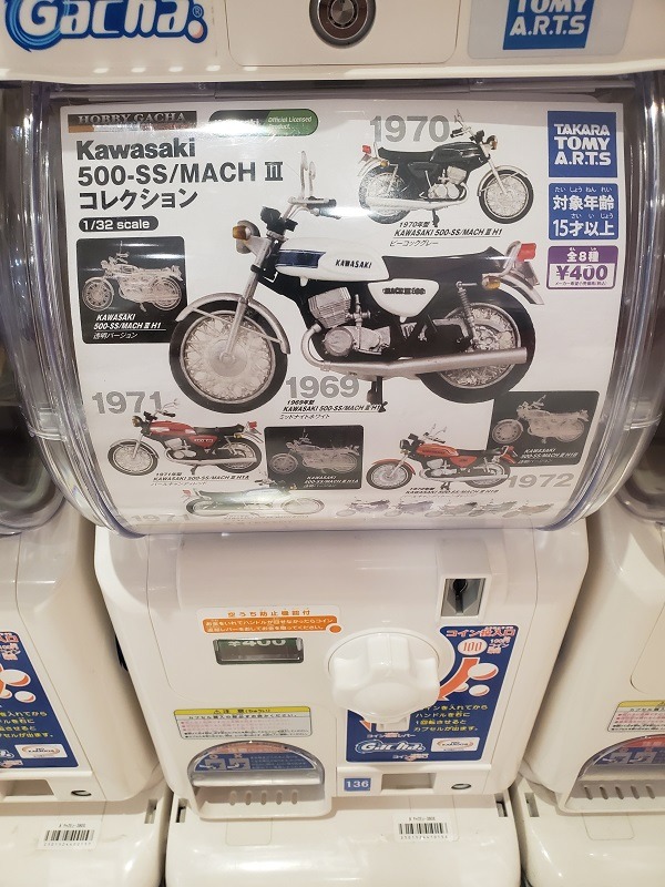 同じ年代のバイク、カワサキのマッハⅢのガチャガチャを見つけてしまったからなのです(^^:
