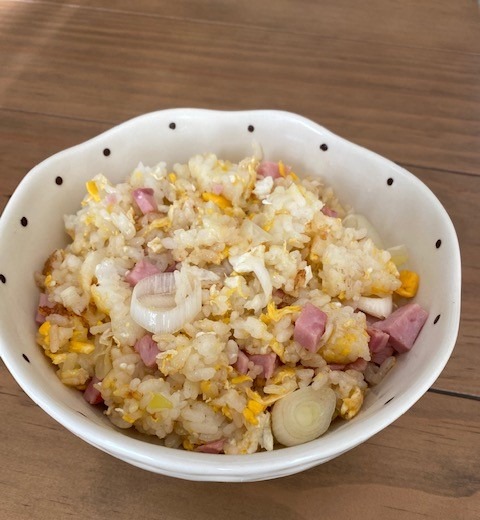 明宝ハムのチャーハンです。狙い通り焼き飯にマッチして美味しいチャーハンになりました。上司に感謝!!