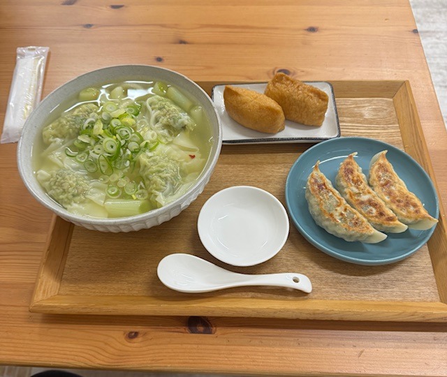 なぎささんのワンタンうどんと焼き餃子をオーダー、ワンタンも水餃子バージョン的な感じなので