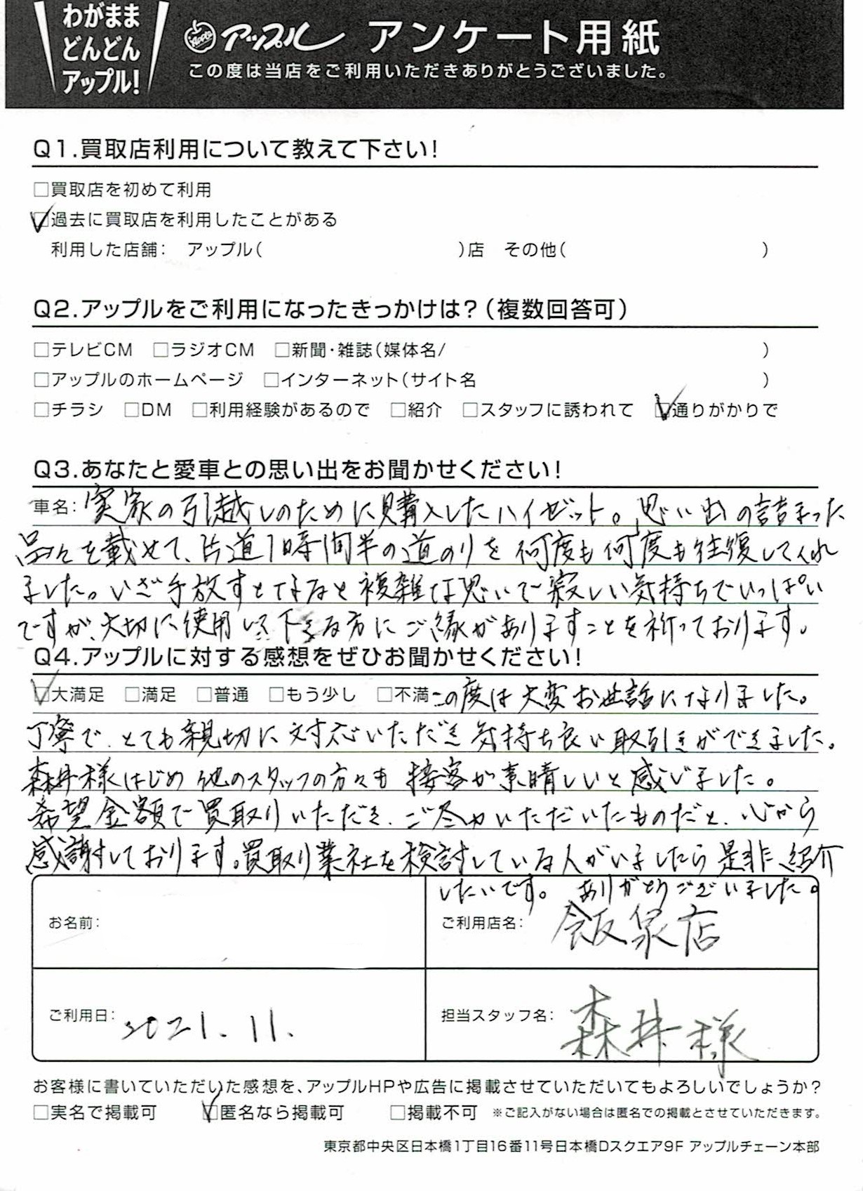 この度はお世話になりました。丁寧でとても親切に対応して頂き気持ちの良い取引ができました。