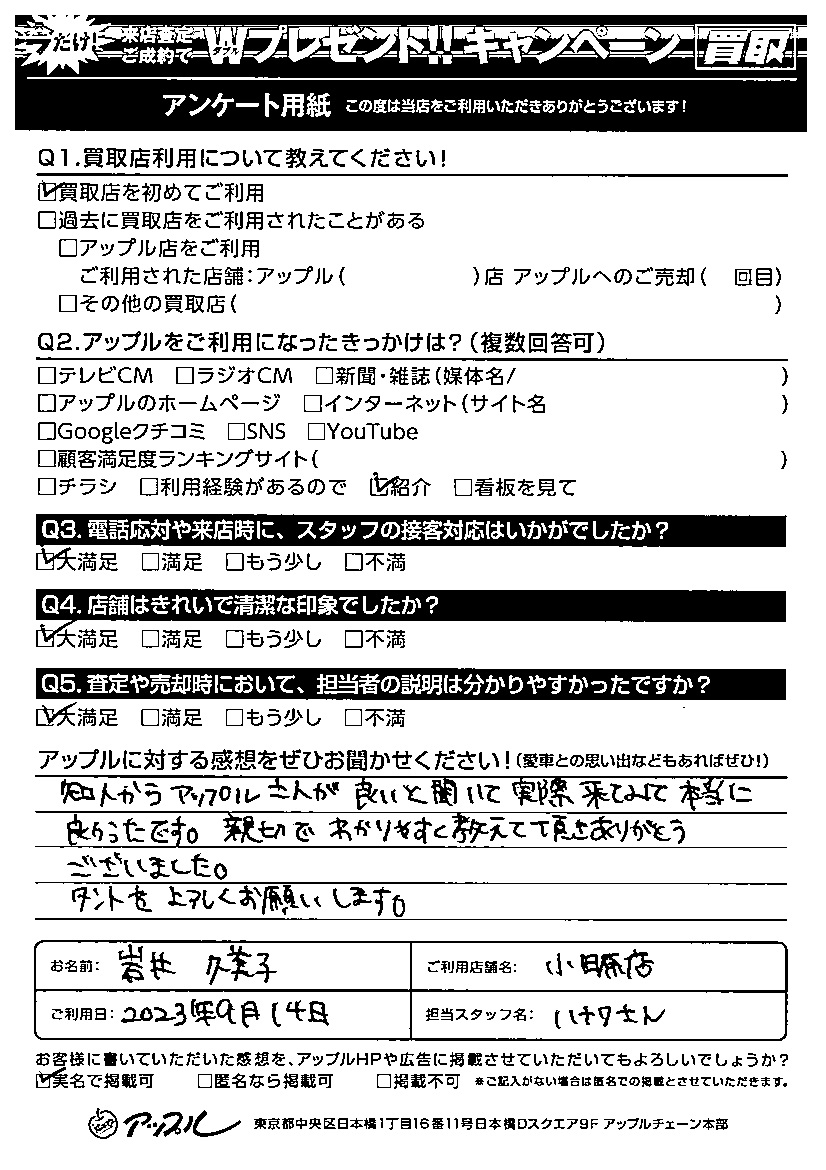 岩井 久美子様