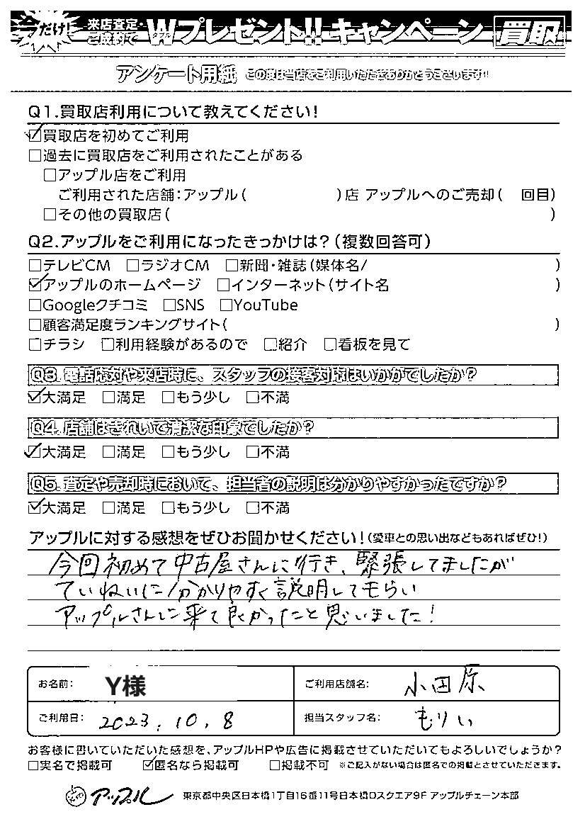ご利用日:2023年10月8日 担当:もりい