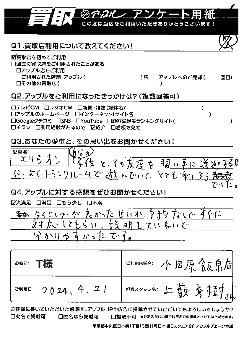 ご利用日:2024年4月21日 担当:上藪秀樹