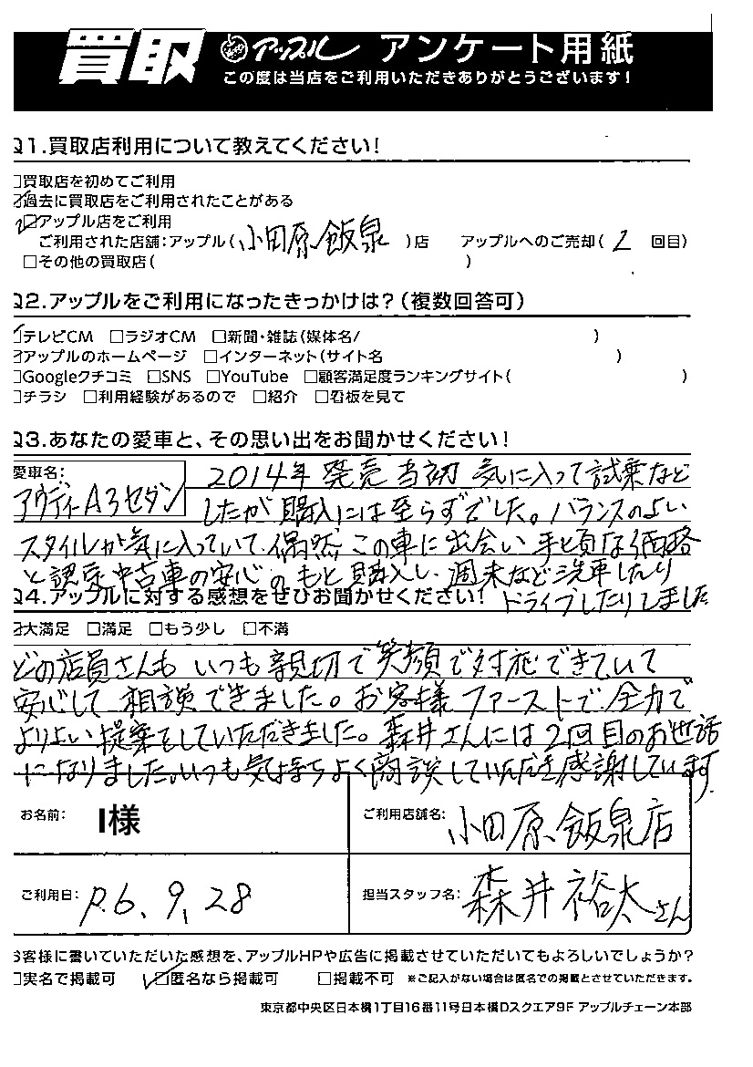 ご愛車 アウディA3セダン 担当:森井