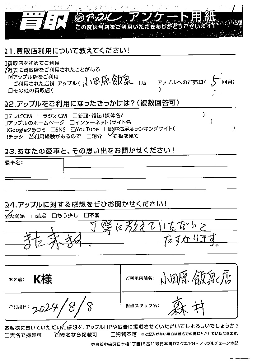 ご利用日:2024/08//08 K 様