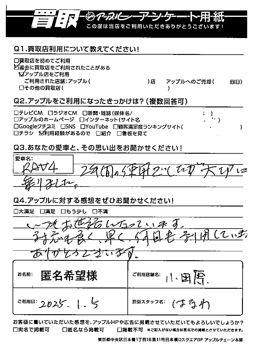 ご利用日:2025/01/05 匿名希望 様
