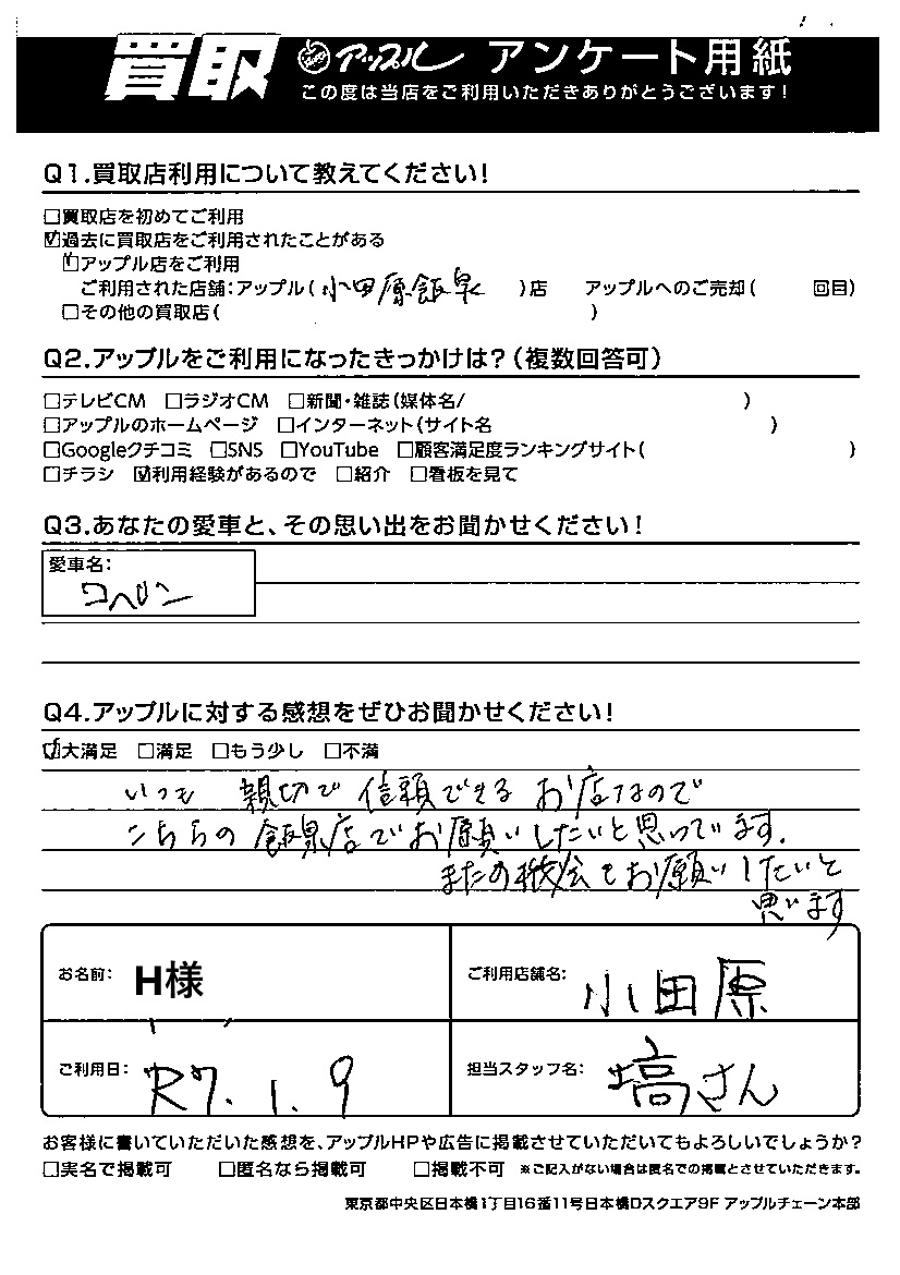 ご利用日:2025/01/09 H 様