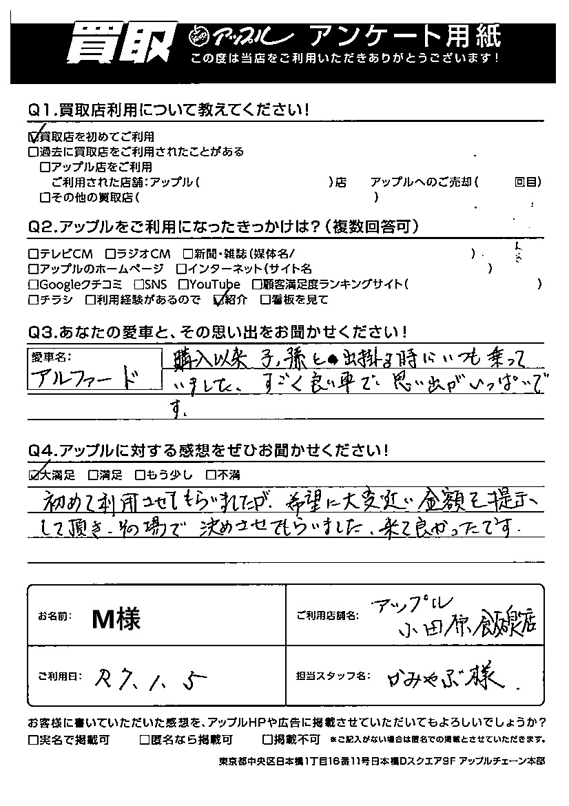 M様 車名:トヨタ アルファード(H27年1月~のHYBRID含む)