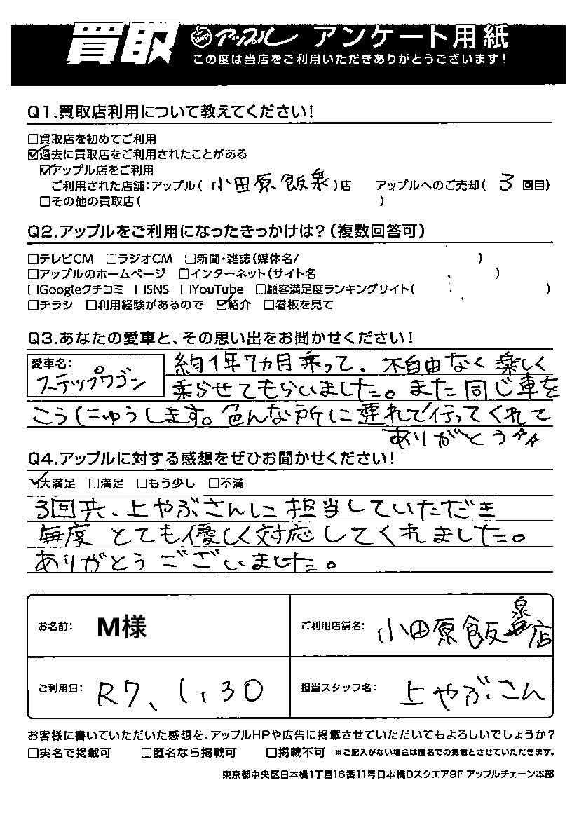 ご利用日:2025/01/30 M 様