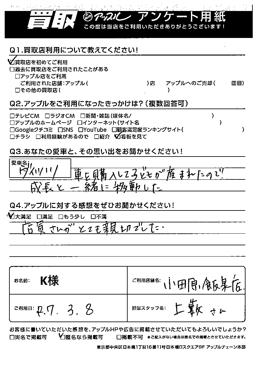 ご利用日:2025/03/08 K 様