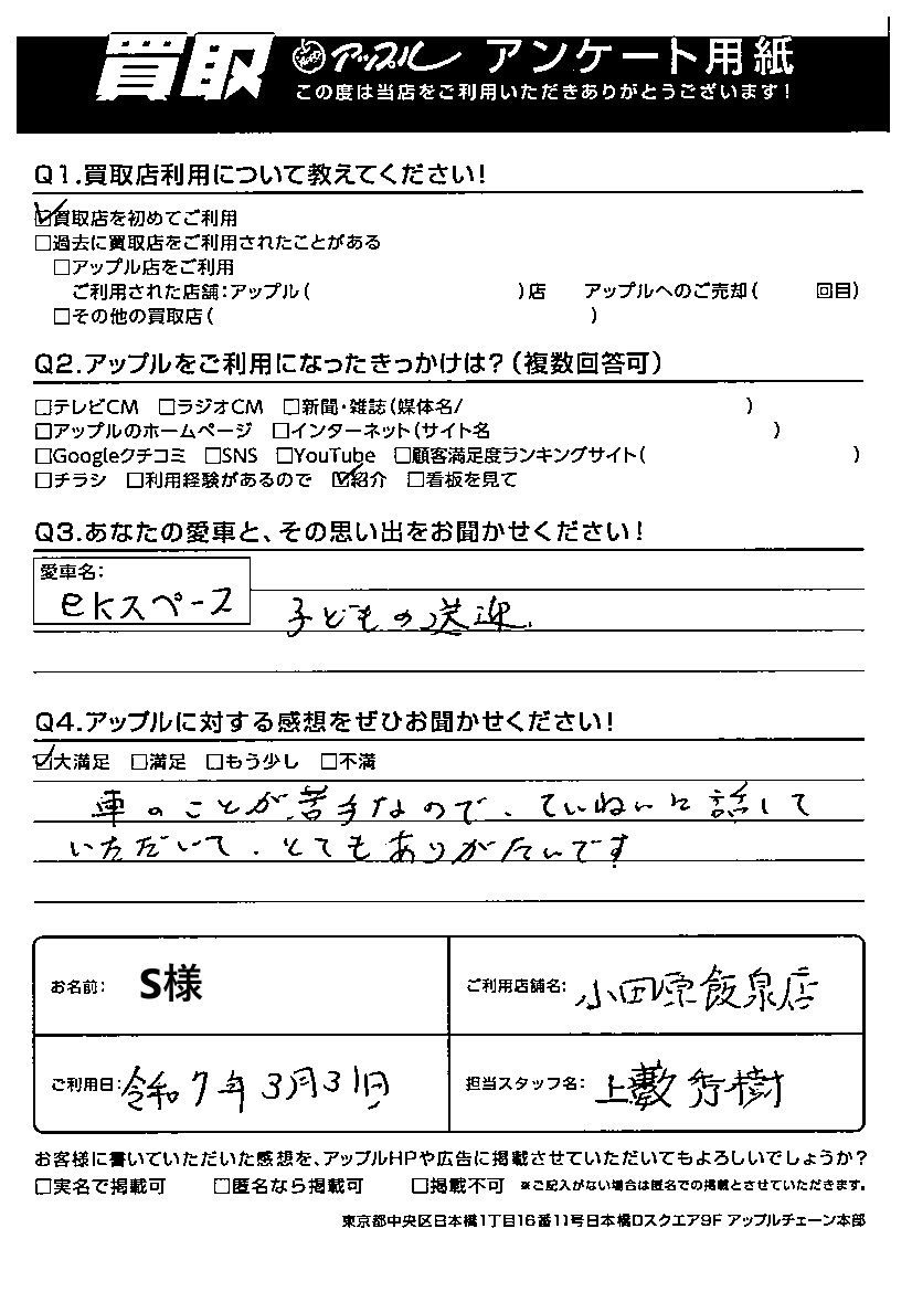 ご愛車 ekスペース 担当:上藪