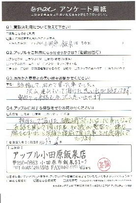 担当して頂けた磯崎様には親身になってお話を聞いて頂けたこと、知識が豊富で嫌な顔をせず、ずっと笑顔で接客して頂けたこと、とても感謝しております。