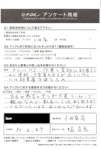 お車のご相談・ 査定だけでもOK! カンタン 入力 30秒 アップルがブランド買取始めました! お電話でも受付中! 受付時間10:00 ~ 19:00 0465-49-5503 お車のご相談・ 査定だけでもOK! カンタン 入力 30秒 アップルがブランド買取始めました! お電話でも受付中! 受付時間10:00 ~ 19:00 0465-49-5503 アップルがブランド買取始めました! お電話でも受付中! 受付時間10:00 ~ 19:00 0465-49-5503 店舗情報 在庫車 スタッフ紹介 ブログ お客様の声 キャンペーン 無料査定 click お客様の声 ご記入日: 2018/02/27 N様 店長や社員の方々が大変丁寧で親切なので数年に1回利用させて頂いています。ありがとうございます。☆N様いつもありがとうございます!こちらこそ、いつもご利用頂き感謝の気持ちでいっぱいです! 前へ 次へ お客様の声一覧を見る