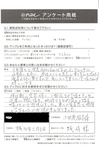 休日朝に突然伺い、ご相談させて頂きました。迅速に対応頂き、納得できる内容をご掲示頂いたので即決しました。車への愛着を理解して下さったのが決め手となりました。