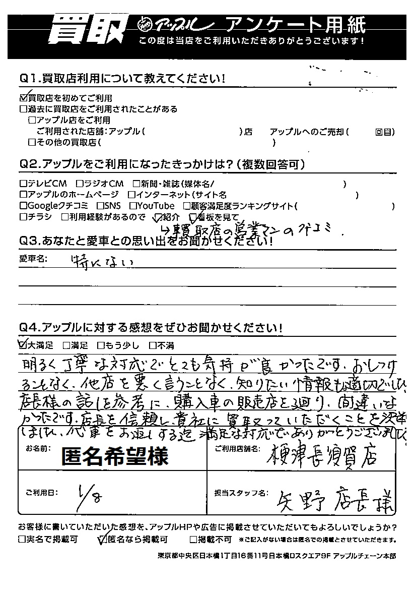 店長を信頼し、貴社に買取っていただくことを決断しました。