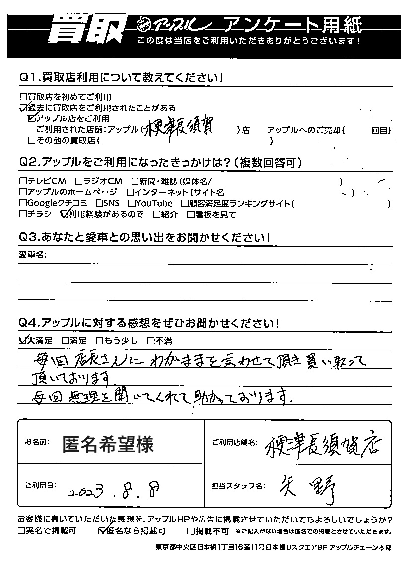 毎回、店長さんにわがままを言わせて頂き買い取って頂いております。
