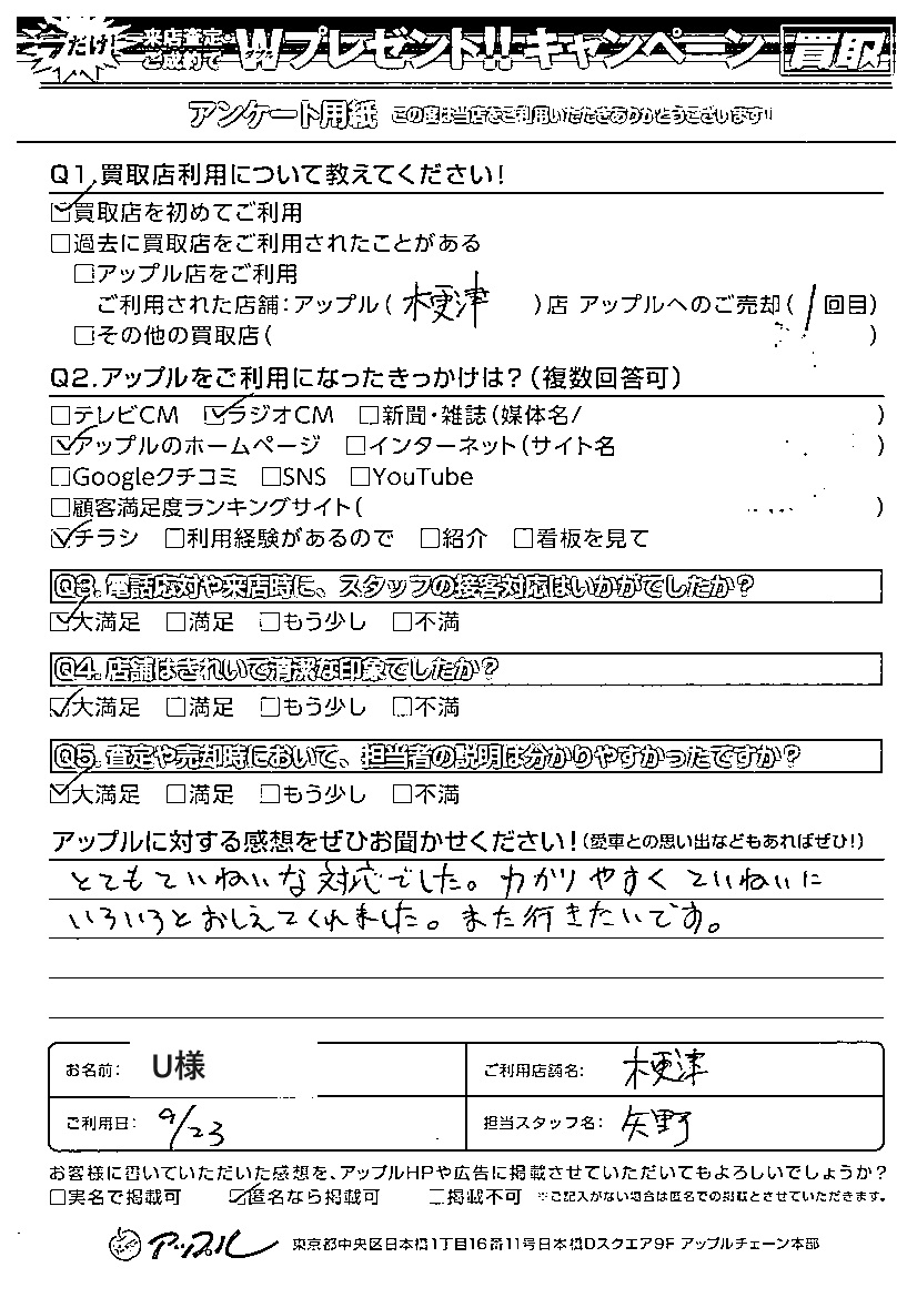 Q電話対応や来店時に、スタッフの接客対応はいかがでしたか?