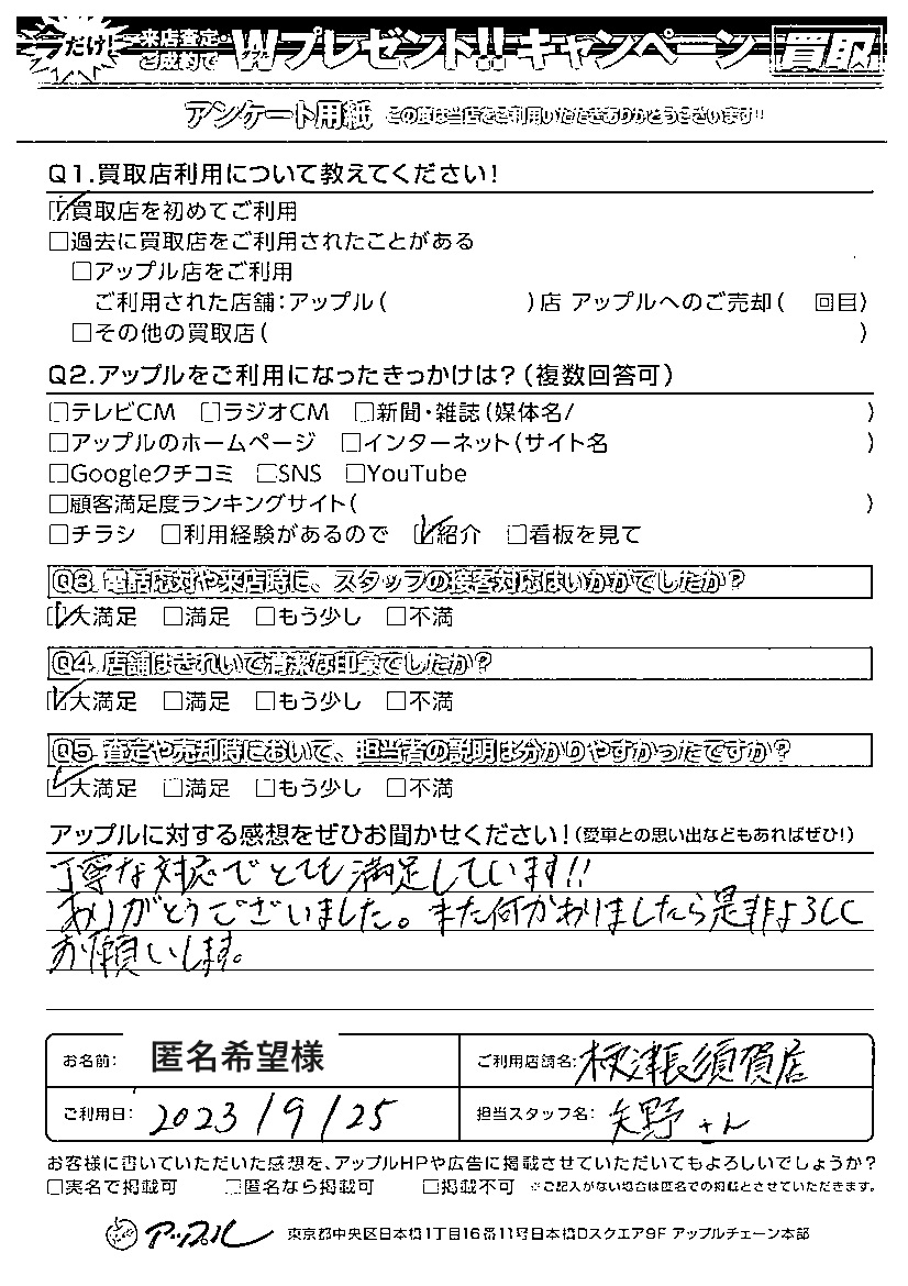 Q電話対応や来店時に、スタッフの接客対応はいかがでしたか?