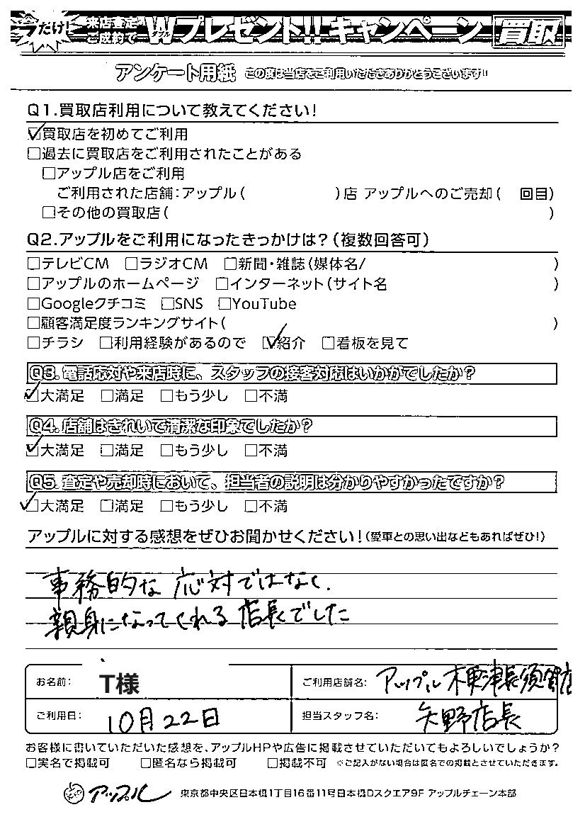 Q電話対応や来店時に、スタッフの接客対応はいかがでしたか?