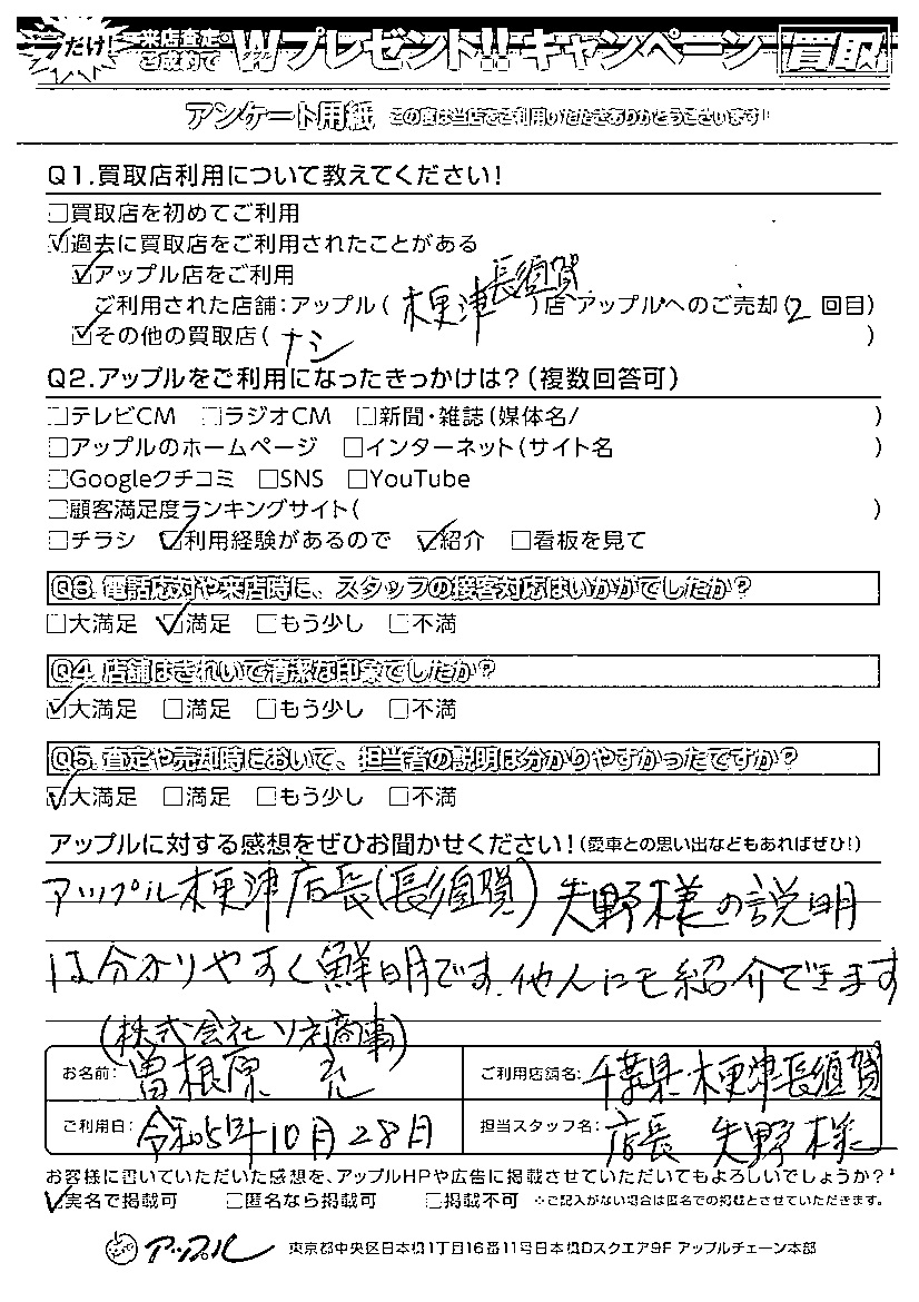 アップル木更津店長(長須賀)矢野様の説明は分かりやすく鮮明です。