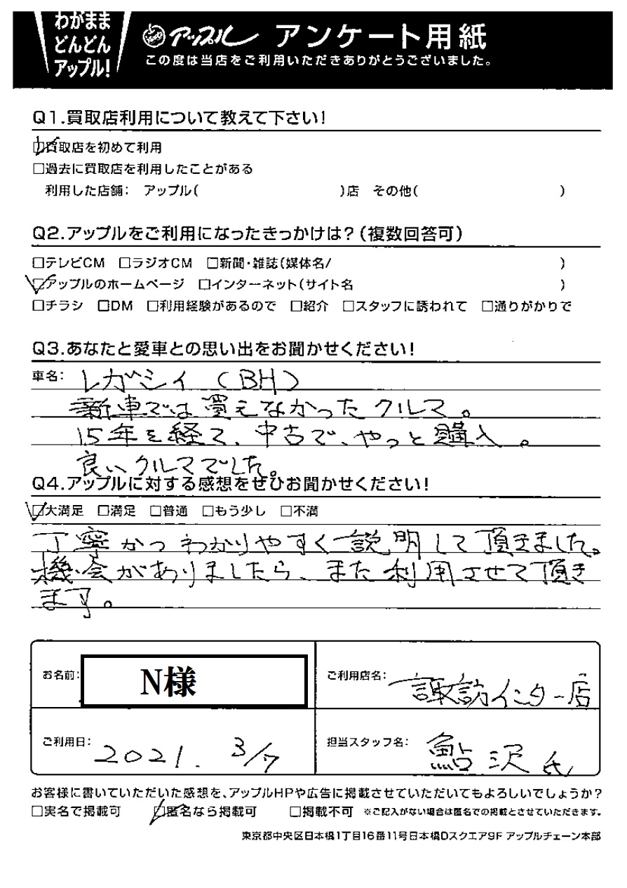N様 車名:スバル レガシィツーリングワゴン