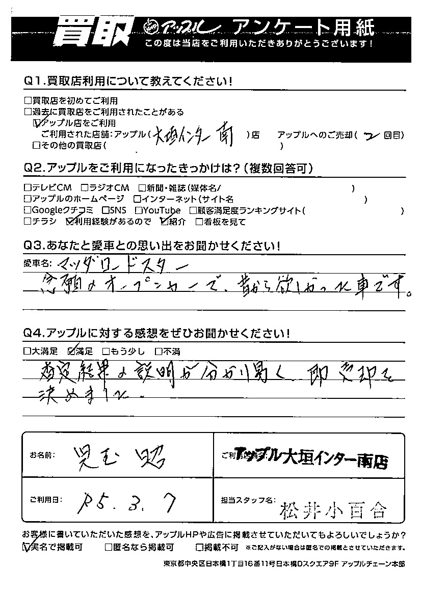 ご愛車:マツダ ロードスター 担当:松井